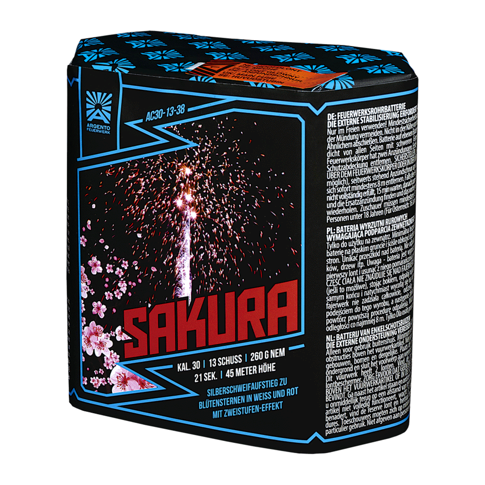 Silberschweif-Aufstieg zu Blumensternen in Weiß und Rot, die in zwei Phasen mit Zeitverzögerung aufleuchten.