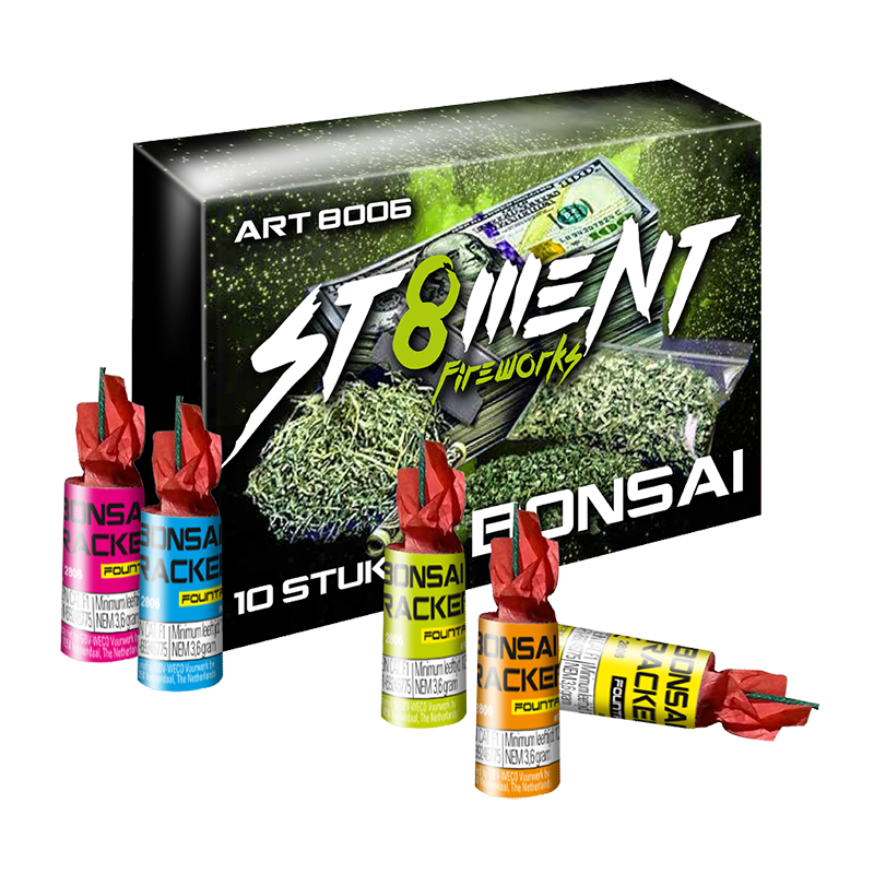 Bonsai, 10 fonteinen in een doosje. De Bonsai fonteinen zijn prachtige sierlijke fonteinen in de categorie 1 vuurwerk. Verbazingwekkend dat uit zo-n klein fonteintje zo-n groots effect kan komen!