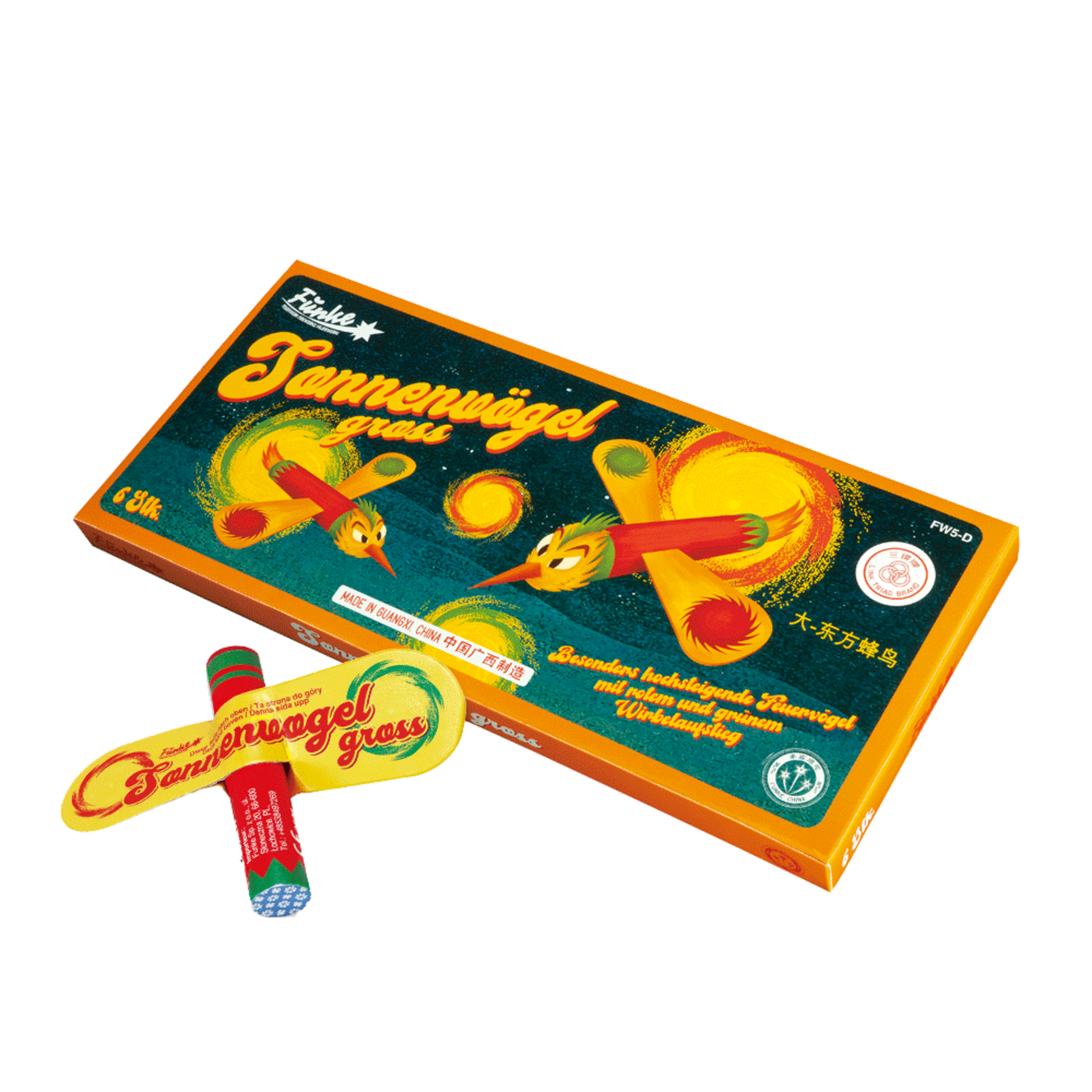 Bijzonder zwevende vuurvogels met rode en groene zonnevortex opstijging.