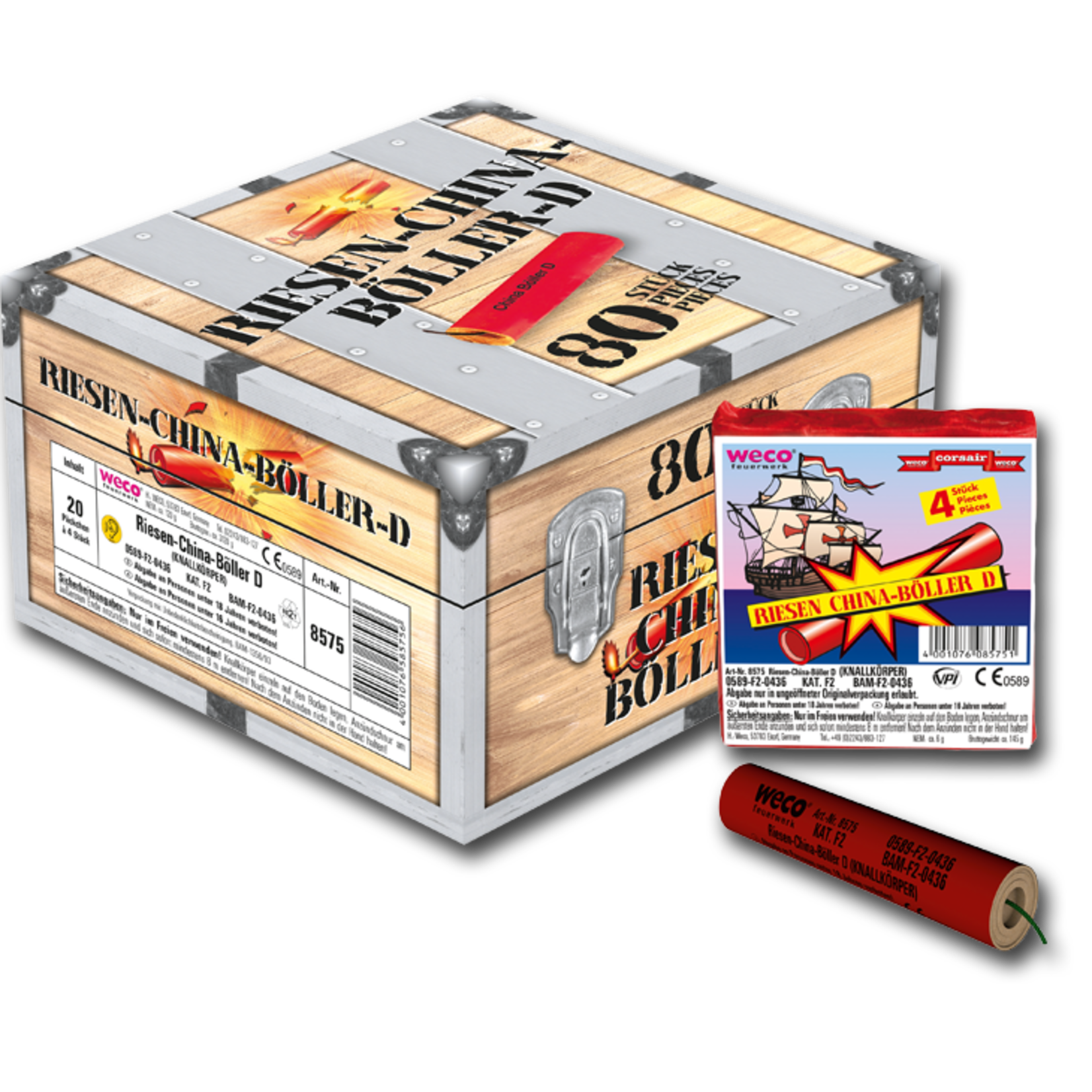 Riesen-China-Böller D 80 stuks. 20 pakjes in een doos, 4 Böller per pakje.
