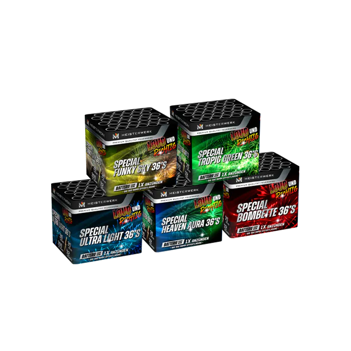 5x een 36 shots cake met prachtige effecten. Maximaal gevuld en extra voordelig!
