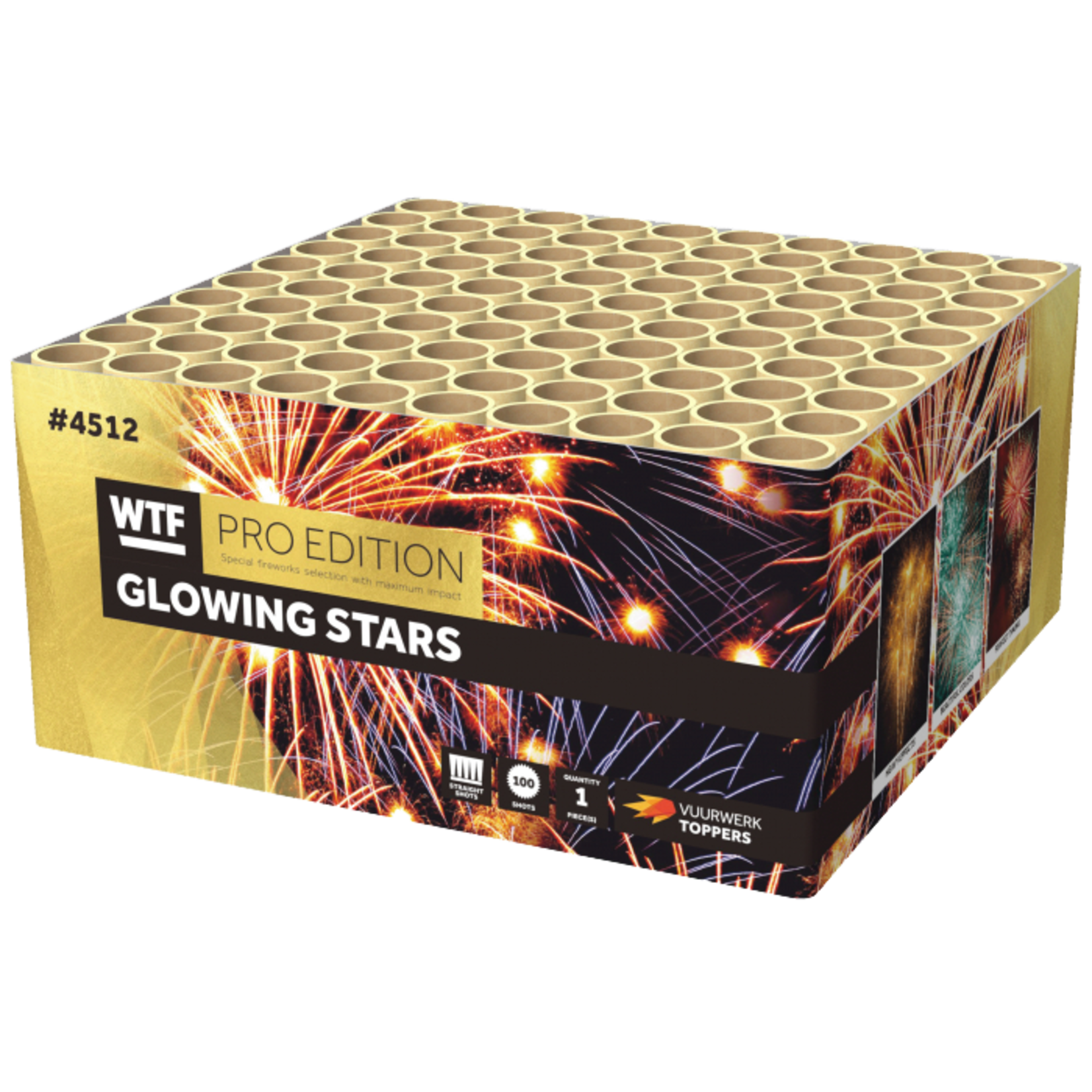 Een prijs-kwaliteits topper! De Glowing Stars bevat 100 schoten met werkelijk waar te veel effecten om op te noemen. Verschillende afvuur snelheden en een knallende finale!